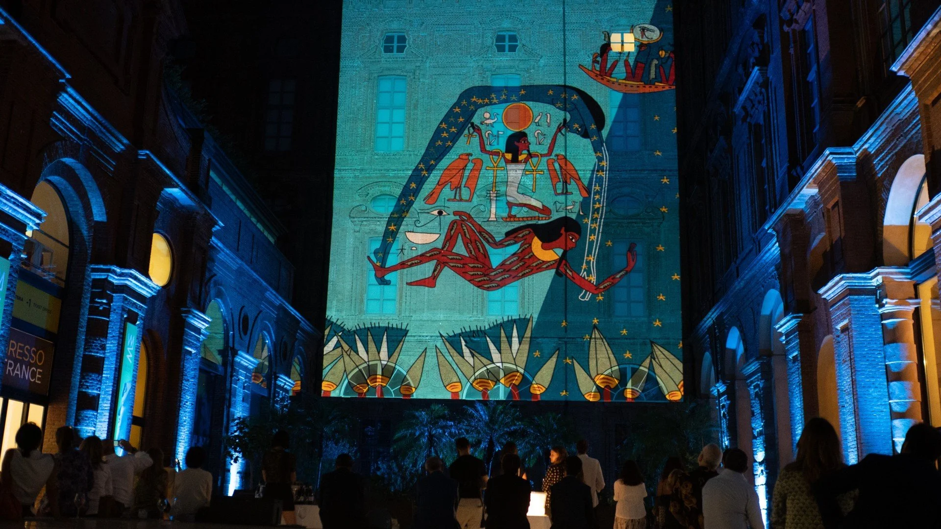 A green space in the courtyard of the Collegio dei Nobili inside the Museo Egizio of Turin (Italy) has been transformed into a garden with an evening video-mapping show. This tribute to ancient Egypt, one of the first civilizations to develop garden culture and assign symbolic meanings to plants and flowers, was enhanced by our music composition.